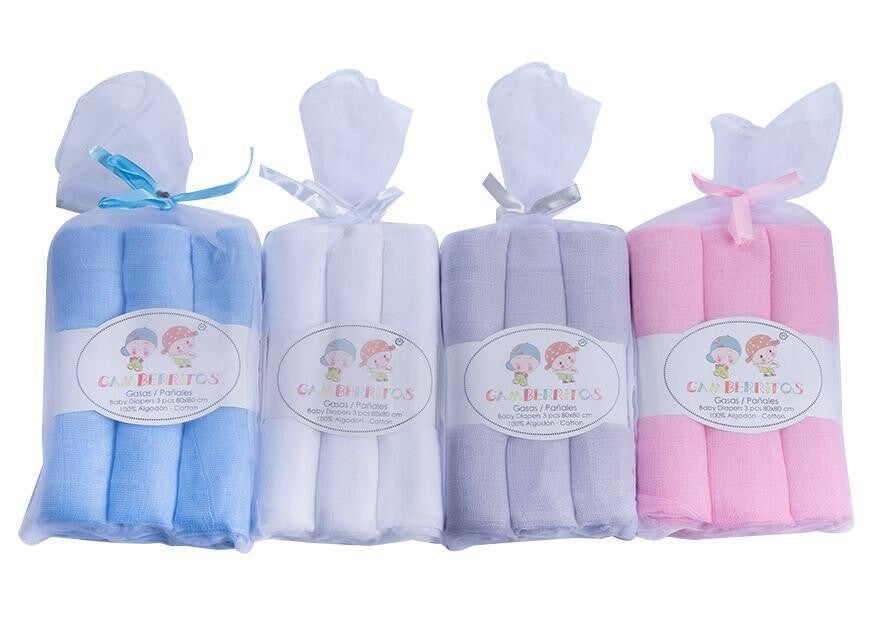 PACK DE 3 GASAS LISAS (AZUL,ROSA,BLANCO,GRIS) GAMBERRITOS
