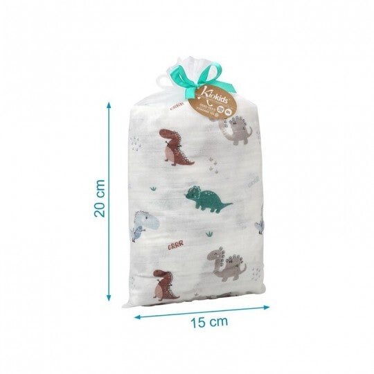 - La muselina presenta un encantador patrón de dinosaurios en tonos verde y marrón, añadiendo un toque de estilo y diversión a los accesorios de tu bebé.