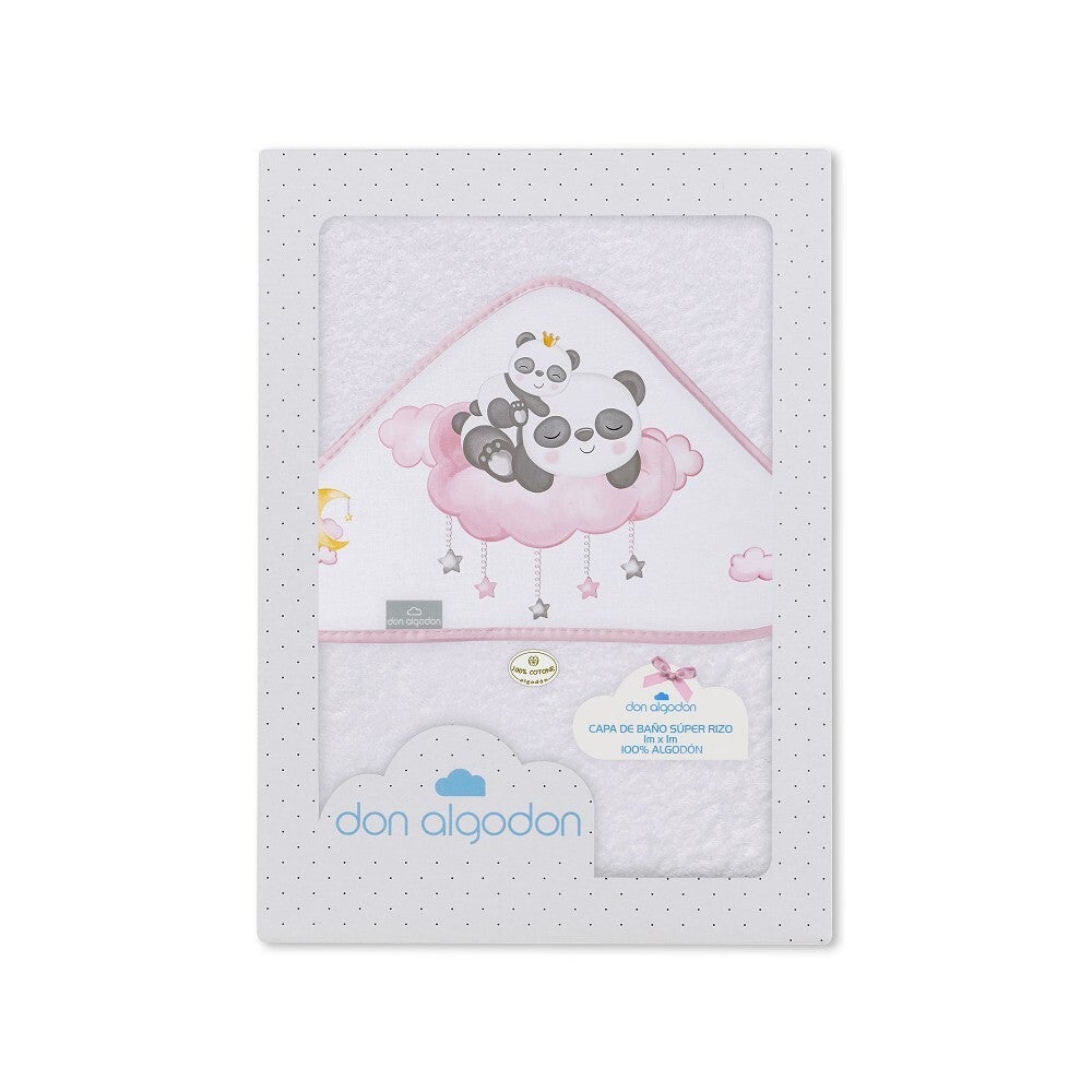 - Capa de baño para bebé en color blanco/azul o rosa con adorables detalles de panda y nube.