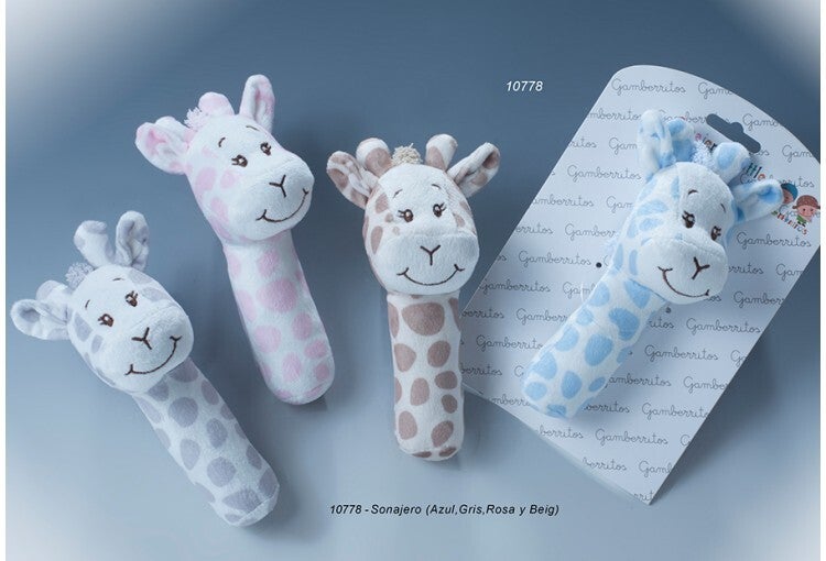 - Sonajero de peluche en forma de jirafa tacto aterciopelado.