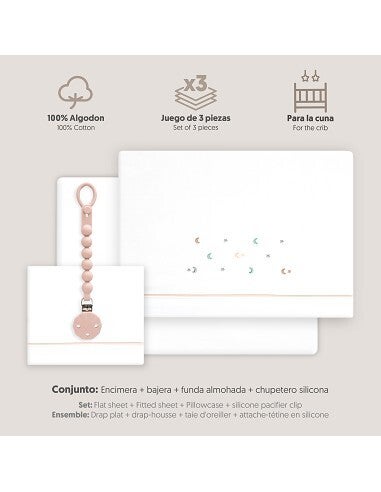 - Conjunto de sabanas para cuna de algodón colección estrella luna, incluye regalo de un chupetero de silicona.