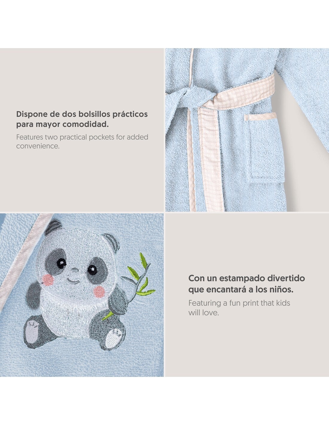 - Bordado de un panda, embalaje del producto en percha y bolsa, diseñado en España, marca fabrica Interbaby.